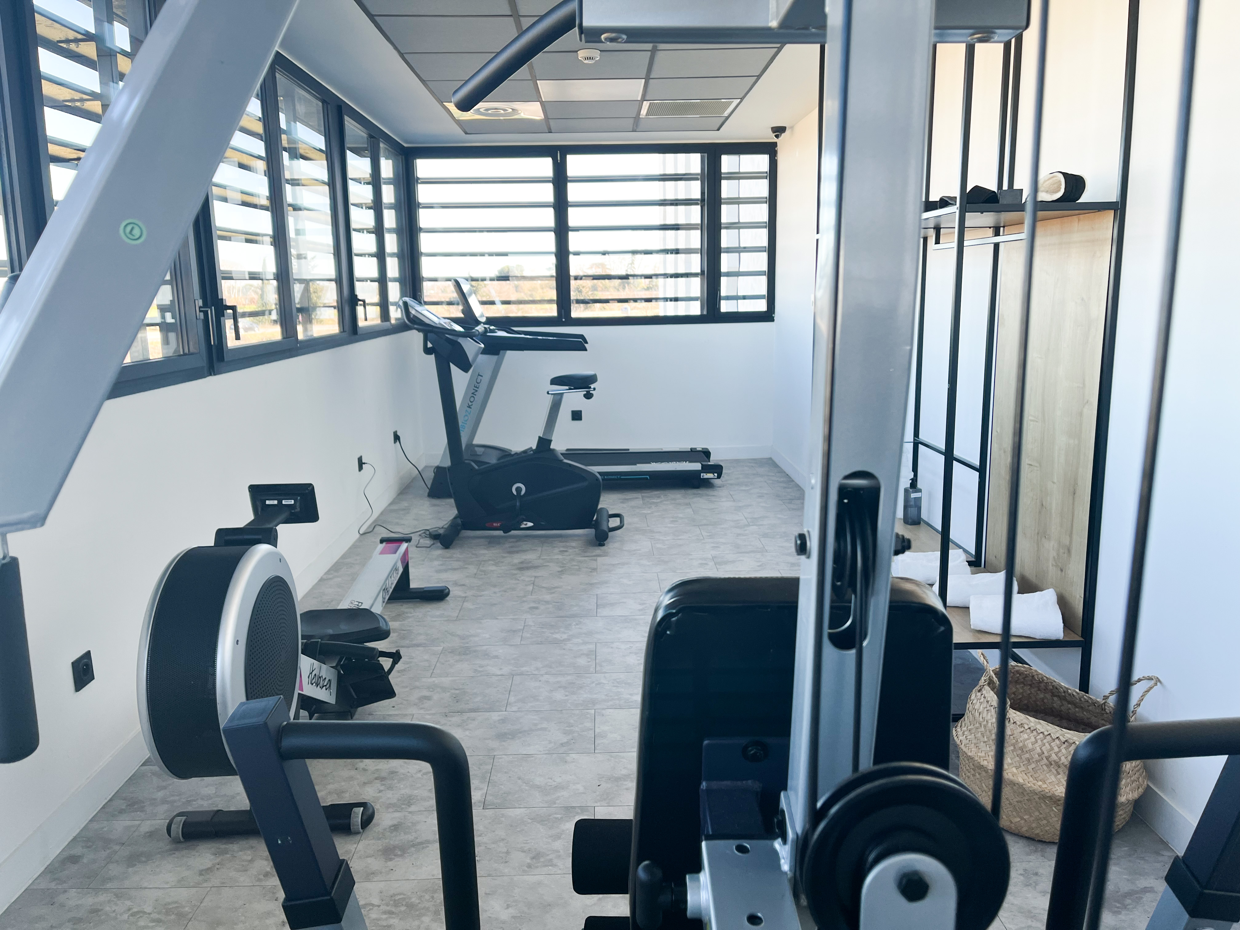 Our hotel also has a gym with the latest technology and a breathtaking view of the garrigue...